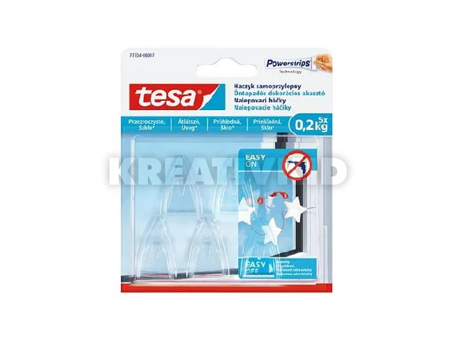 Műanyag akasztó, ragasztócsíkkal, kis méret, TESA "Powerstrips®", átlátszó