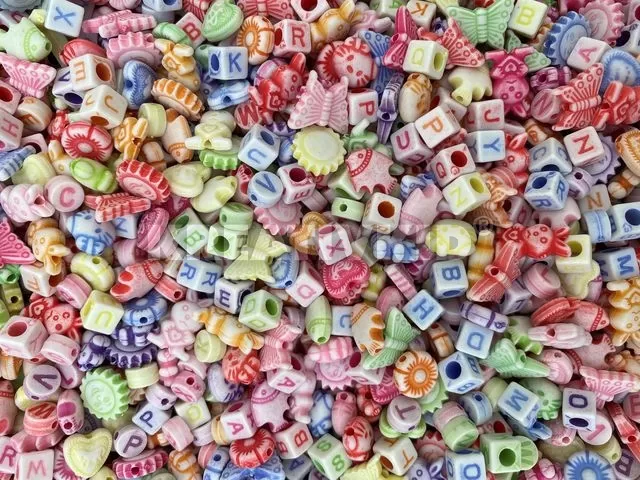 Műanyag gyöngy ABC/figurák 25 gr/cs