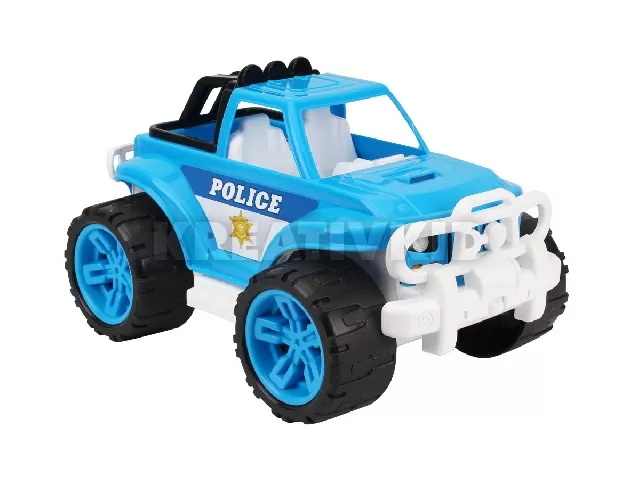Nagyobb játék terepjáró, rendőrségi színekben! A fehér-kék Műanyag rendőr terepjáró egy masszív játékautó, amit még a homokozóban is tologathatsz! Az autó fém tengelyekkel, nagy kerekekkel készült, a terepjáró több pontján is gallytörő rácsokat találsz, amik megóvják a sérüléstől. Ültesd be kedvenc akciófigurád a vezetőülésbe, rakj a platóra játékokat, és tologathatod is fel-alá a szobában, vagy a kertben is! A Műanyag rendőr terepjáró méretei: 35 x 23 x 20 cm.