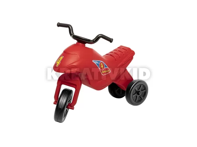 Vagány, egyszerű felépítésű, műanyagból készült piros lábbal hajtós kismotor. Az első kerék kormányozható, és műanyagból készült, a motor matricákkal van díszítve. Méretek: 60 x 28 x 44 cm. A motor 4-es méretkategóriába tartozik. Ülésmagasság: 29 cm.
