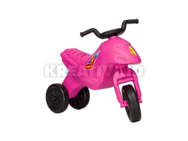 Vagány, egyszerű felépítésű, műanyagból készült rózsaszín lábbal hajtós Super bike közepes kismotor. Az első kerék kormányozható, és a motor matricákkal van díszítve. Méretek: 58 x 28 x 44 cm.