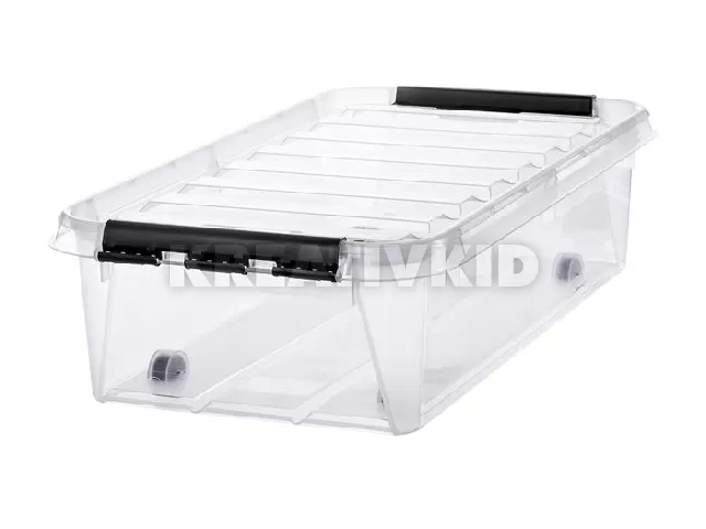 Műanyag tárolódoboz, 31 liter, fekete fogantyúkkal és görgőkkel, SMARTSTORE "Classic 35", átlátszó