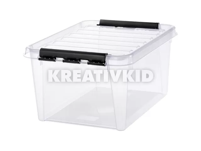 Műanyag tárolódoboz, 32 liter, fekete fogantyúkkal, SMARTSTORE "Classic 31", átlátszó