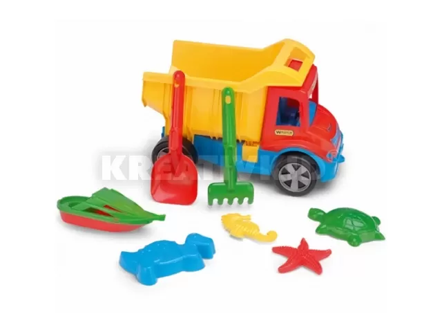 A kisgyerekek egyik kedvenc időtöltése a homokozás. Nemcsak a kreativitást fejleszti, hanem a finommozgás képességét is. Az ujjak mozgatása hatással van a szellemi fejlődésre. Ezért javasoljuk már a legkisebbeknek is a homokozást. Továbbá a homokozó jó hatással van a gyerekek képzelőerejére, kreativitására, teret és anyagot biztosít különböző struktúrák építéséhez (pl. homokvárak) játékdömperrel, lapátokkal és vödrökkel szállítani lehet a homokot, lyukat áshatnak, várat építhetnek, és ami a képzeletükből elővarázsolnak gyerekeink. Más szóval, a homokozó és homokozó játékkal való foglalkozás olyan közeget biztosít, amiben a gyerekek a körülöttük lévő világ kis darabjának felfedezését, felépítését három dimenzióban gyakorolhatják. Homokozó szettben található lapát, gereblye, négy féle homokozó forma, egy jacht és maga a billenős dömper.