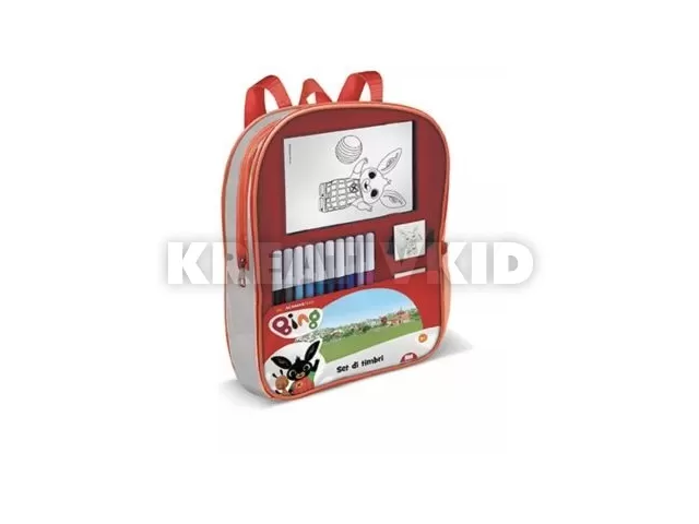 Bing mintájú lenyomatok készíthetők. Tartalma: 10 filctoll, 4 pecsét, 1 pecsétpárna, 30 matrica. Praktikus hátizsákban tárolható és hordozható. Fejleszti a gyerekek szem-kéz koordinációját, finommotorikáját, kézügyességét és kreativitását, valamint segíti az önkifejezést. Csomagolás mérete: 23 x 9 x 30 cm