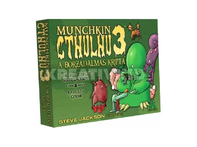 Berúgod a borzadalmas kripta ajtaját!Goomi A végzet borzadalmas kriptája (Unspeakable Vault [of Doom]) című képregényében évek óta boldogít mindenkit azzal, hogyan képzeli ő a Cthulhu-mítoszt! A Mérhetetlen Vének egyedi értelmezése most, ebben az 56 lapos kiegészítőben a MUNCHKIN részévé válik Etesd meg a barátaidat Kutyulóval, növessz csáplábat és használd a nem emberi jajongást az incifinci nyígó legyőzésére. Még több téboly! Még több szörny! Még több izé, ami fájhat a szörnyeknek!Ez a munchkin Cthulhu kiegészítője, nem önálló játék!