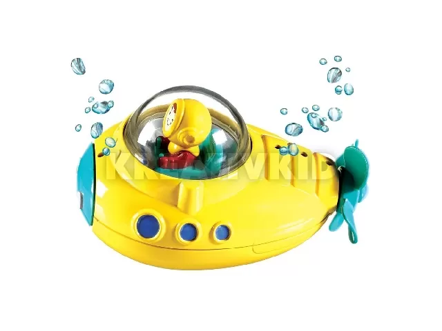 - a sárga játék a víz alá merülve buborékokat fúj ki magából