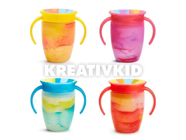 A Munchkin Miracle Cup egy 360 fokos itatópohár, amelynek peremérõl bárhonnan ihat a gyermek, nem kell aggódni a csöpögés miatt. Speciális szelepes teteje használat után automatikusan visszazár.