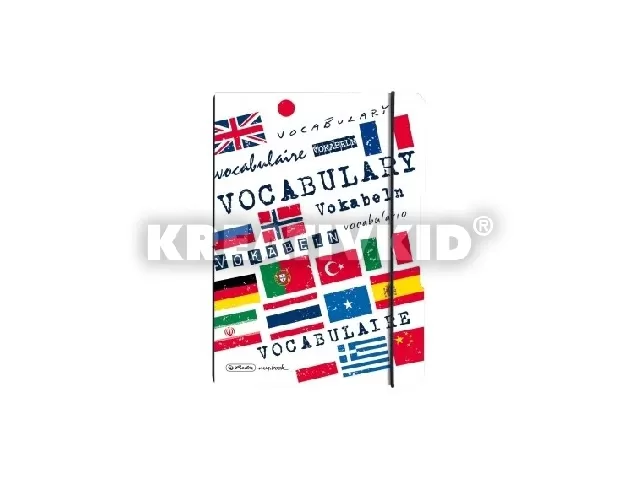 my.book flex szótárfüzet, A5-ös méretben, 80g/m2 famentes belívvel, hófehér lapokkal, lekerekített sarkokkal, hosszanti irányban gumiszalaggal záródik, PP fedlappal.
