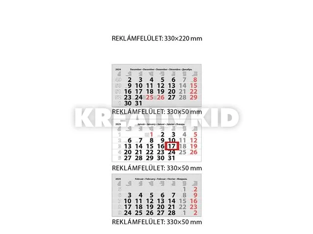 Naptár, speditőr, három hónapos, három tömbös, üres fejrész, DAYLINER