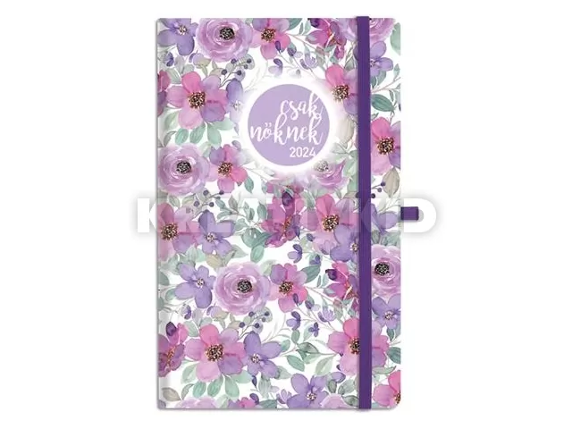 Naptár, tervező, A5, heti, TOPTIMER, "Csak Nőknek", lila virág