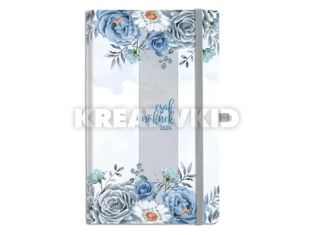 Naptár, tervező, A5, heti, TOPTIMER, "Csak Nőknek", kék virág