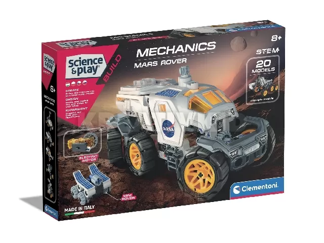 Egy izgalmas és érdekes tudományos szettet szerezhetsz be a Clementoni-tól, mellyel megismerkedhetünk a NASA-val és a Mars Rover járművel, melyet ő maga építhet össze. A szett segíthet gondolkodása fejlődésében és még az érdeklődését is felkeltheti ami akár egy új hobbihoz is vezethet gyermekednél. A szettben megtalálható ehhez egy útmutató is, ami segít az összeszerelésben.