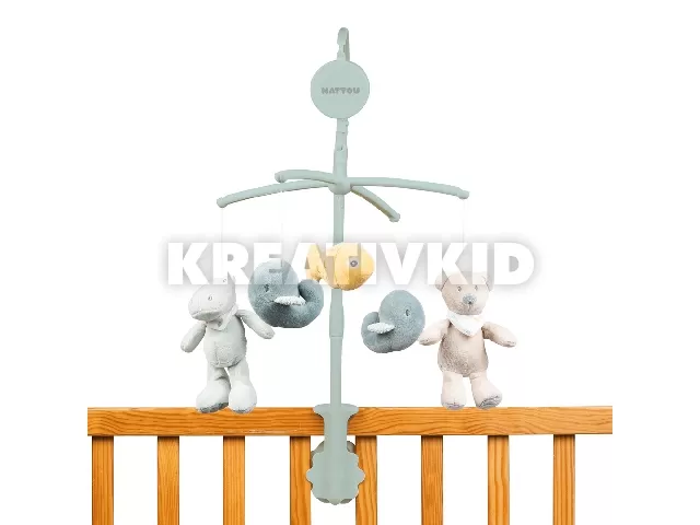 Az imádnivaló zenélõ-forgó, aranyos bújós figuráival - amelyek finoman forognak és mozognak az altatódal ritmusára - nyugodt alvást és édes álmokat biztosít. A zenélõ-forgó egyszerûen és biztonságosan rögzíthetõ a kiságyhoz, bölcsõhöz vagy a járókához, a figurák pedig könnyen eltávolíthatók és mosógépben moshatók.