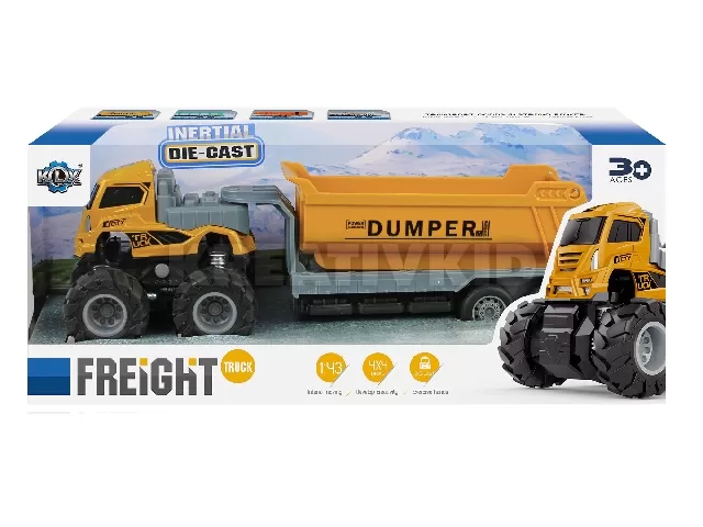 Gurítsd át a szobán ezt a menő négykerékmeghajtású teherszállítót utánfutóval! A műanyag négykerékmeghajtású teherszállítót utánfutóval, ha egyenesen megtolod, messzire fog gurulni.