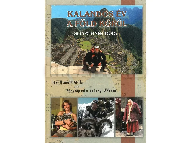 Németh Attila-Bakonyi Andrea Kalandos év a Föld körül (kamerával és vadászpuskával) 2. kiadásUtasok ?vagyunk valamennyien: az élet soha véget nem érő utazás. Amint elérjük a vágyott célt, mindig kiderül róla, hogy az csupán újabb kiindulópont. És amikor végre-valahára megérkezel valahová, túl sok dolgot hagysz magad mögött örökre. Ha elég bátor vagy ahhoz, hogy hátrahagyj mindent, ami biztonságot nyújtott, az otthonodat, a munkahelyedet, elindulsz, hogy megtaláld önmagad, legyen az akár belső utazás vagy igazi, világ körüli út, nagyon is valóságos kalandokkal vadászattal, óceáni búvárkodással, hegymászással s mindenféle viszontagságokkal, egyéb izgalmakkal fűszerezve.Mindez valójában nem is arról szól, hogy mit nézünk meg, hanem inkább arról, amit közben átélünk. Az élmények olyanok, akár a kirakós játék egy-egy újabban meglelt darabkája ha készen állsz arra, hogy egyszer és mindenkorra elfogadd az igazságot magaddal és a világgal kapcsolatban, akkor biztosan megleled, amit keresel, egyúttal még jobban megismered belső lényedet és határaidat! Minden utazás egyszeri és megismételhetetlen a lényege: emberekkel találkozni, megtanulni nemcsak elfogadni egy másik kultúrát, hanem élvezni is úgy venni részt benne, mintha helybeli lennél, és úgy reagálni mindenféle benyomásra. Így aztán többet megtanulsz egy útról, ha végigjárod, mint a világ összes térképéből.E nagyszerű könyvnek, egyben a szerzők -e két kalandvágyó ifjú ember, Németh Attila és a hitvese, Bakonyi Andrea merész vállalkozásának ez a tanulsága: higgyünk megérzéseinknek, bízzunk álmainkban csak akkor válhat mindez valósággá, ami sokkal többet nyújt bármiféle csalóka ábrándnál. (GT)