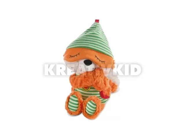 Nici: Finjo róka plüssfigura. A plüss sapkája a szemére húzható.