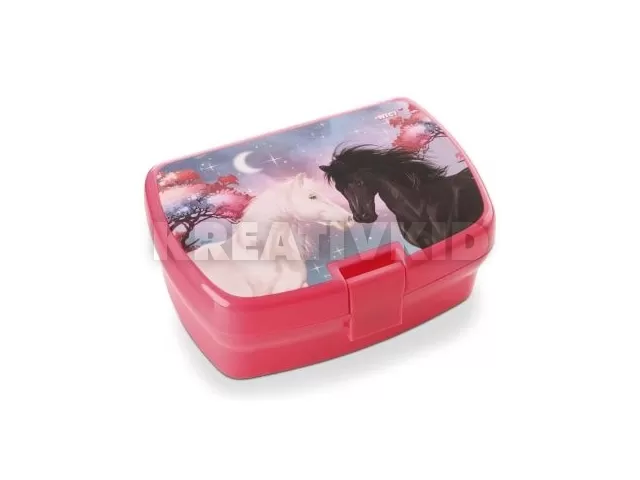 Nici: Soulmates uzsonnás doboz gyerekeknek lovacska mintával. Minőségi műanyagból készült, könnyen nyitható és zárható, mosogatógépben 60°C-ig tisztítható.