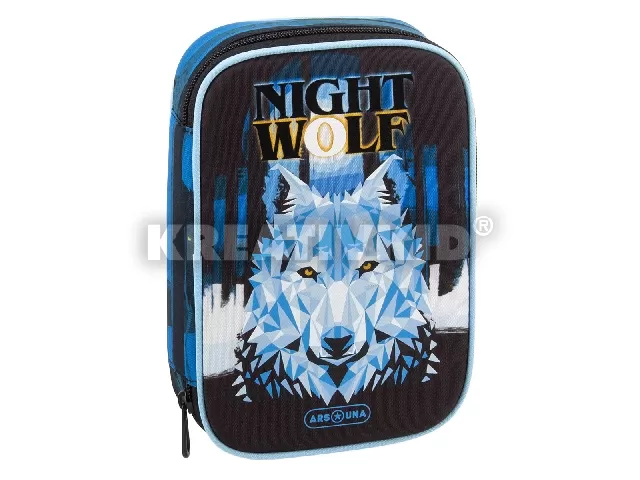 Többszintes, töltetlen, cipzáras tolltartó. Belül textillel bevont merev lapokkal, gumis kialakítással 30 ceruza számára az írószerek tárolásához és egy cipzáras belső zsebbel.