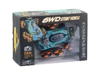 Zöld terepjáró, ami szaltót tud ugrani! A Távirányítós átfordulós autó egy fekete és zöld alapszínű, műanyag karosszériával készült autó, nagy kerekek...
