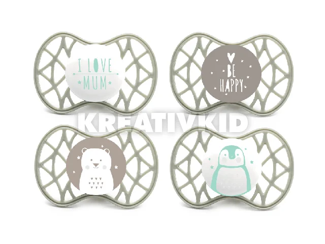 - Rácsos kialakításuk biztosítja a száj körüli szellőzést, megkönnyíti a légzést, és megakadályozza a nyál felhalmozódását és a cumi irritációját.