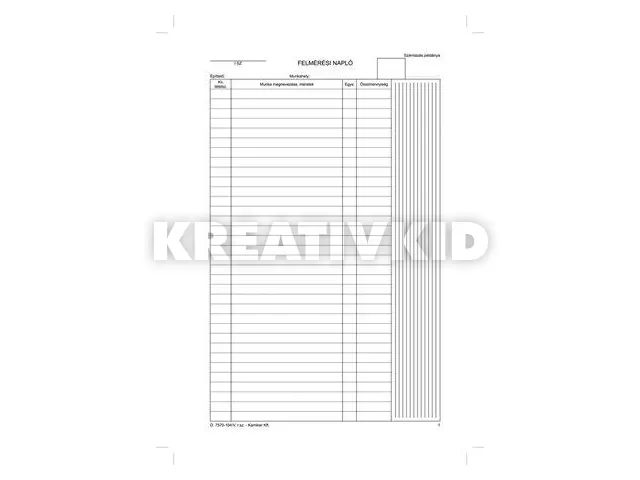 Nyomtatvány, felmérési napló, 25x5, A4, VICTORIA PAPER