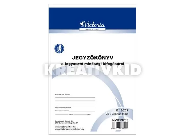 Nyomtatvány, jegyzőkönyv a fogyasztó minőségi kifogásáról, 25x3, A5, VICTORIA PAPER, "B.13-233", 20 tömb/csomag