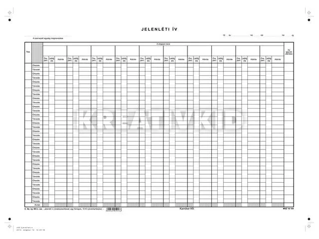 Nyomtatvány, jelenléti ív, 1 hónap-10 fő, A3, VICTORIA PAPER