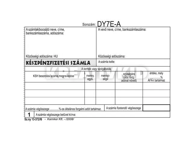 Nyomtatvány, készpénzfizetési számlatömb, egy ÁFÁs, 50x3, A6, fekvő , VICTORIA PAPER, "B.13-372", 20 tömb/csomag
