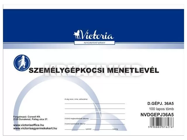 Nyomtatvány, menetlevél, személygépkocsi, 100 lap, A5, fekvő, VICTORIA PAPER, "D.GÉPJ.36.", 10 tömb/csomag