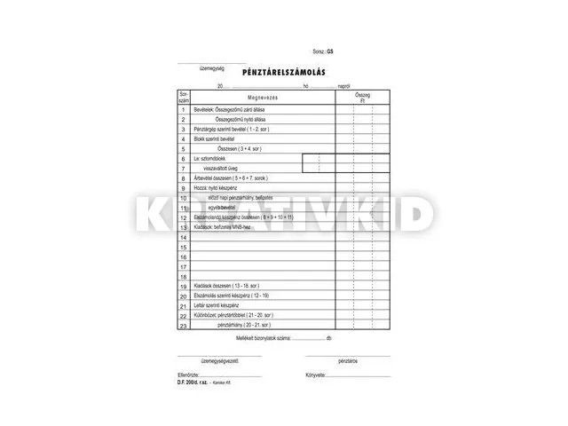 Nyomtatvány, pénztárelszámolás, 25x2, A5, VICTORIA PAPER "DF-200/d", 10 tömb/csomag