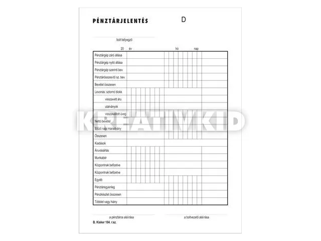 Nyomtatvány, pénztárjelentés, 25x2, A5, VICTORIA PAPER "B.Kisker-104", 10 tömb/csomag
