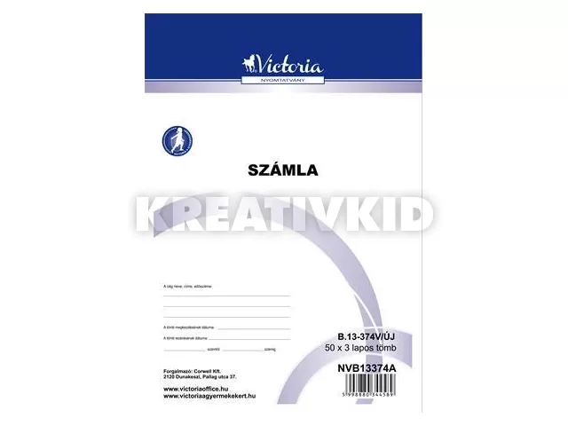 Nyomtatvány, számlatömb, egy ÁFÁs, 50x3, A5, VICTORIA PAPER, "B.13-374", 10 tömb/csomag