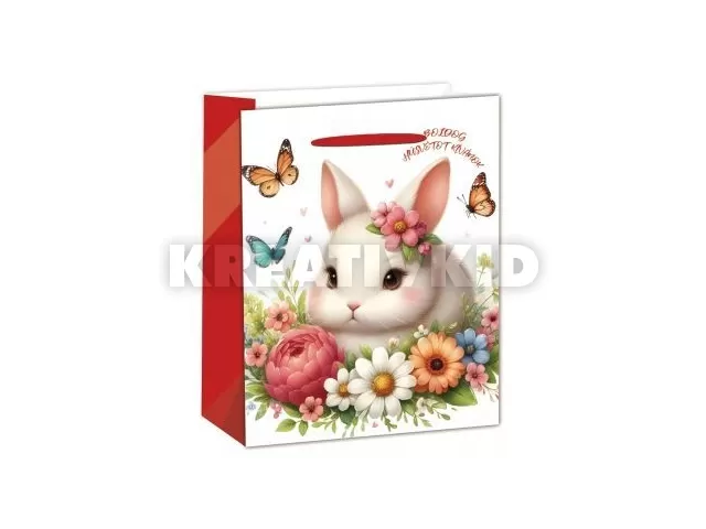 Nyuszi virágokkal ajándéktasak - 11x14 cm