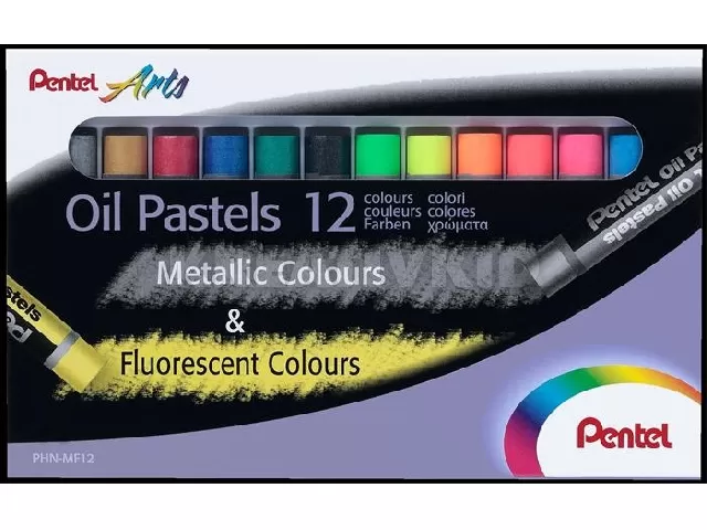 Olajpasztell kréta, PENTEL, "Arts", 12 különböző fluoreszkáló és metál szín