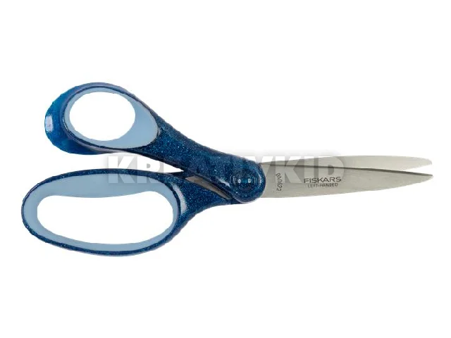 Olló, iskolai, 18 cm, balkezes, FISKARS, csillámos kék