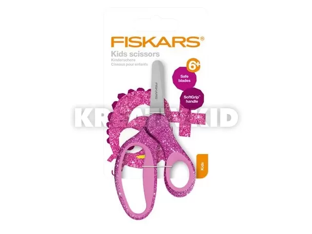 Olló, iskolai, 13 cm, FISKARS "Glitter Kids", rózsaszín