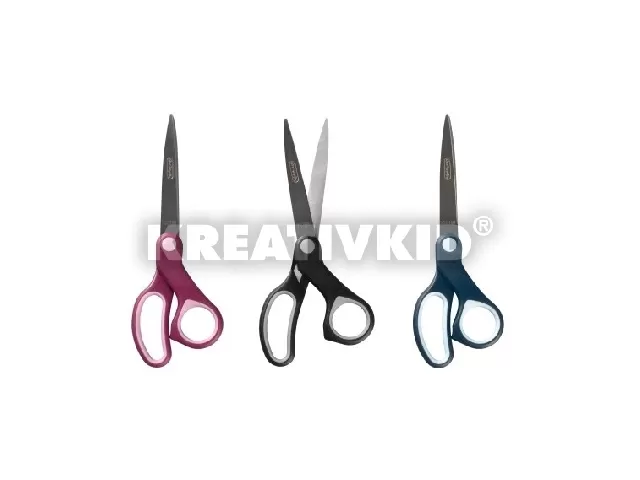Olló nagy, 20,5 cm hosszú, műanyag/acél alapanyagból, ergonomikus, gumis fogórésszel, három színben.