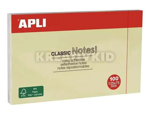 Öntapadó jegyzettömb, 125x75 mm, 100 lap, APLI "Classic", sárga