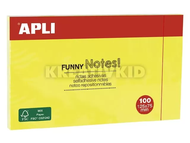 Öntapadó jegyzettömb, 125x75 mm, 100 lap, APLI "Funny", sárga