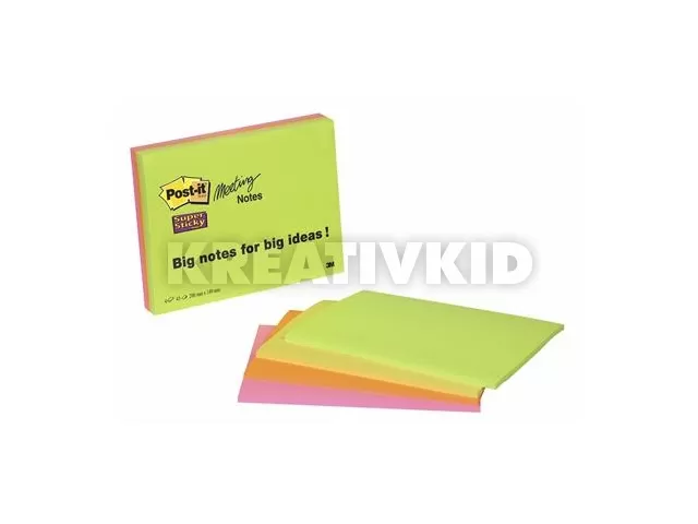 Öntapadó jegyzettömb, 203x152 mm, 4x45 lap, 3M POSTIT "Super Sticky", vegyes színek
