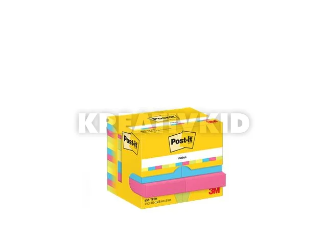 Öntapadó jegyzettömb, 38x51 mm, 12x100 lap, 3M POSTIT "Energetic", vegyes színek