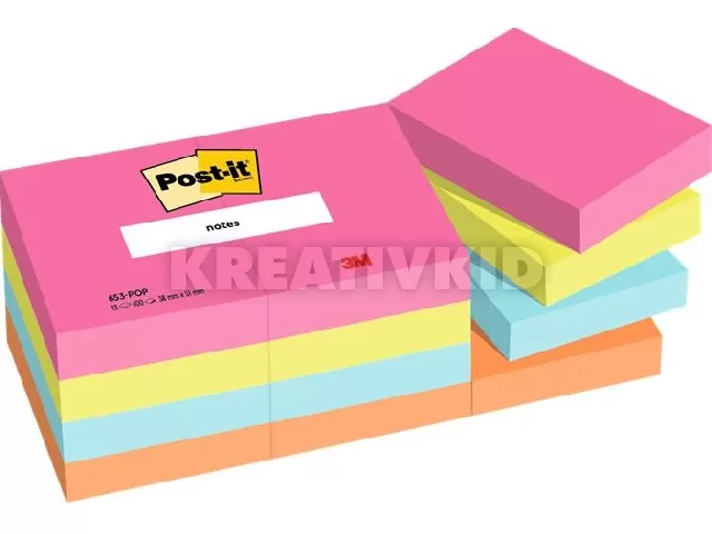 Öntapadó jegyzettömb, 38x51 mm, 12x100 lap, 3M POSTIT "Poptimistic", vegyes színek