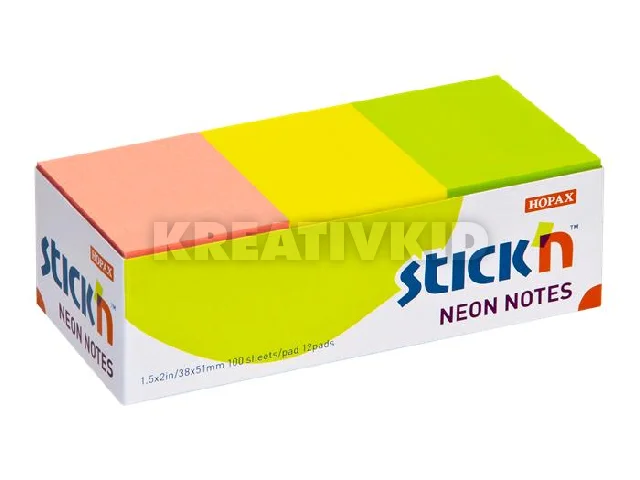 Öntapadó jegyzettömb, 38x51 mm, 12x100 lap, STICK N, neon színek