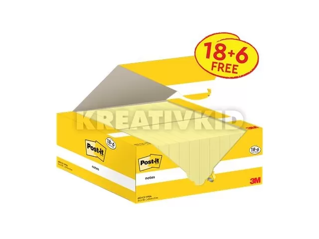 Öntapadó jegyzettömb, 38x51 mm, 18+6x100 lap, 3M POSTIT, kanári sárga