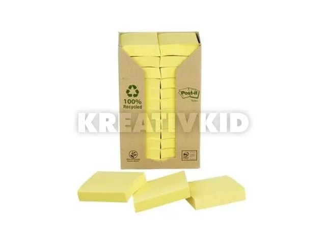Öntapadó jegyzettömb, 38x51 mm, 24x100 lap, környezetbarát, 3M POSTIT, sárga