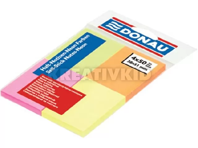 Öntapadó jegyzettömb, 38x51 mm, 4x50 lap, DONAU, vegyes szín