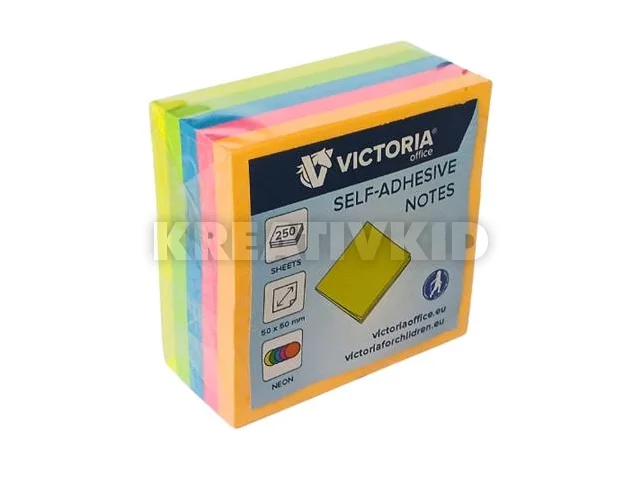 Öntapadó jegyzettömb, 50x50 mm, 250 lap, VICTORIA OFFICE, neon