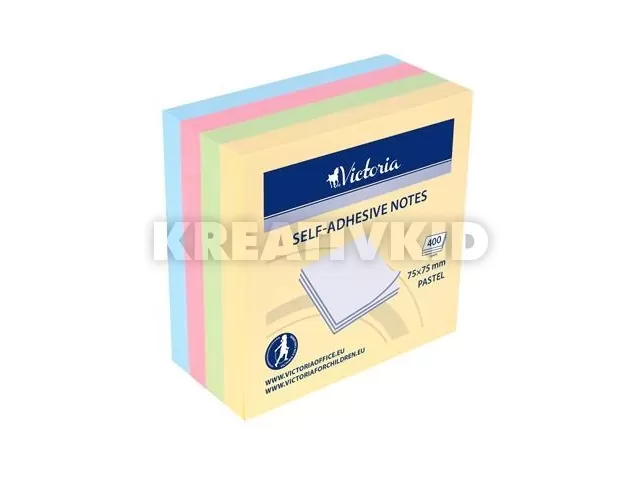 Öntapadó jegyzettömb, 75x75 mm, 400 lap, VICTORIA OFFICE, pasztell