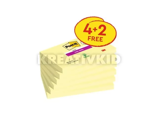 Öntapadó jegyzettömb, 76x127 mm, 4+2x90 lap, 3M POSTIT "Super Sticky", kanári sárga
